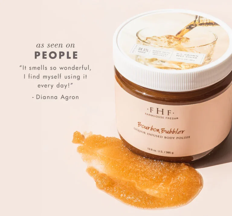 Soak in the bubbly bourbon bliss! This scrub is an intoxicatingly delicious experience that exfoliates and hydrates for silky smooth skin. Made with authentic Texas-distilled whiskey and natural ingredients like rice bran oil, brown sugar and vitamin E. BENEFITS: Brown sugar removes dead skin, providing easier penetration of other products. Exposes new skin, reducing signs of aging. Has a high concentration of vitamin E and potent skin antioxidants to nourish skin.